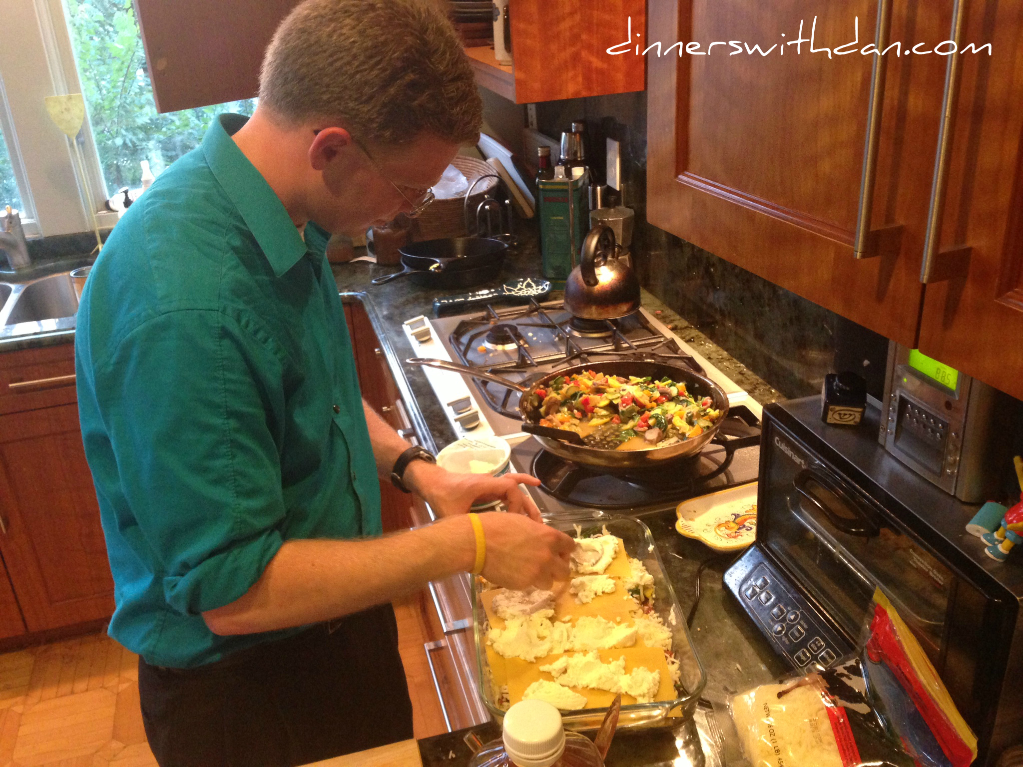 Making the All-Vegetable Lasagna Published September 2, 2013 at 2048 × 1536 in Recipe: All-Vegetable Lasagna Next → Dan putting the Vegetable Lasagna together